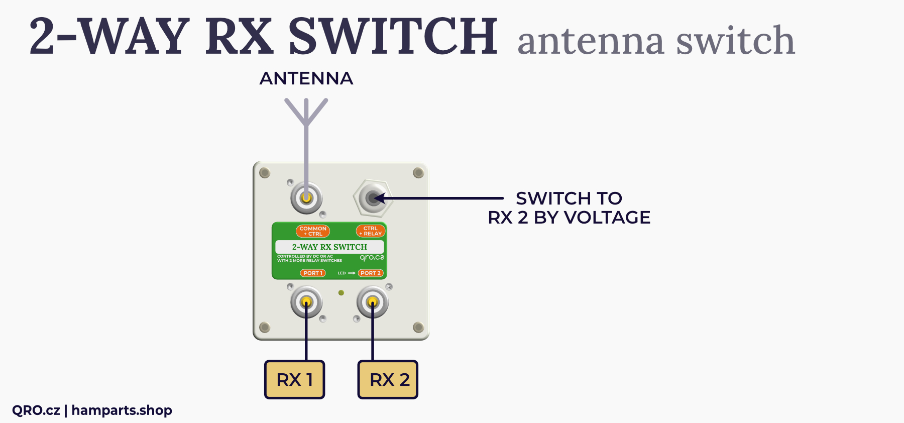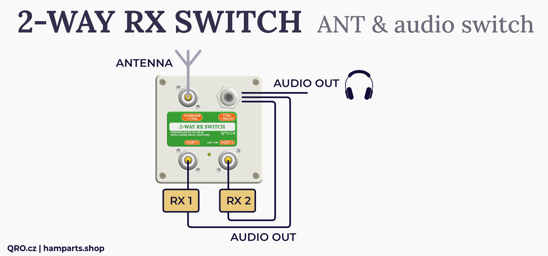You can use the 2-way RX switch to switch one antenna between two receivers. In case the antenna is connected to one receiver. You can also use this relay to switch the speaker.