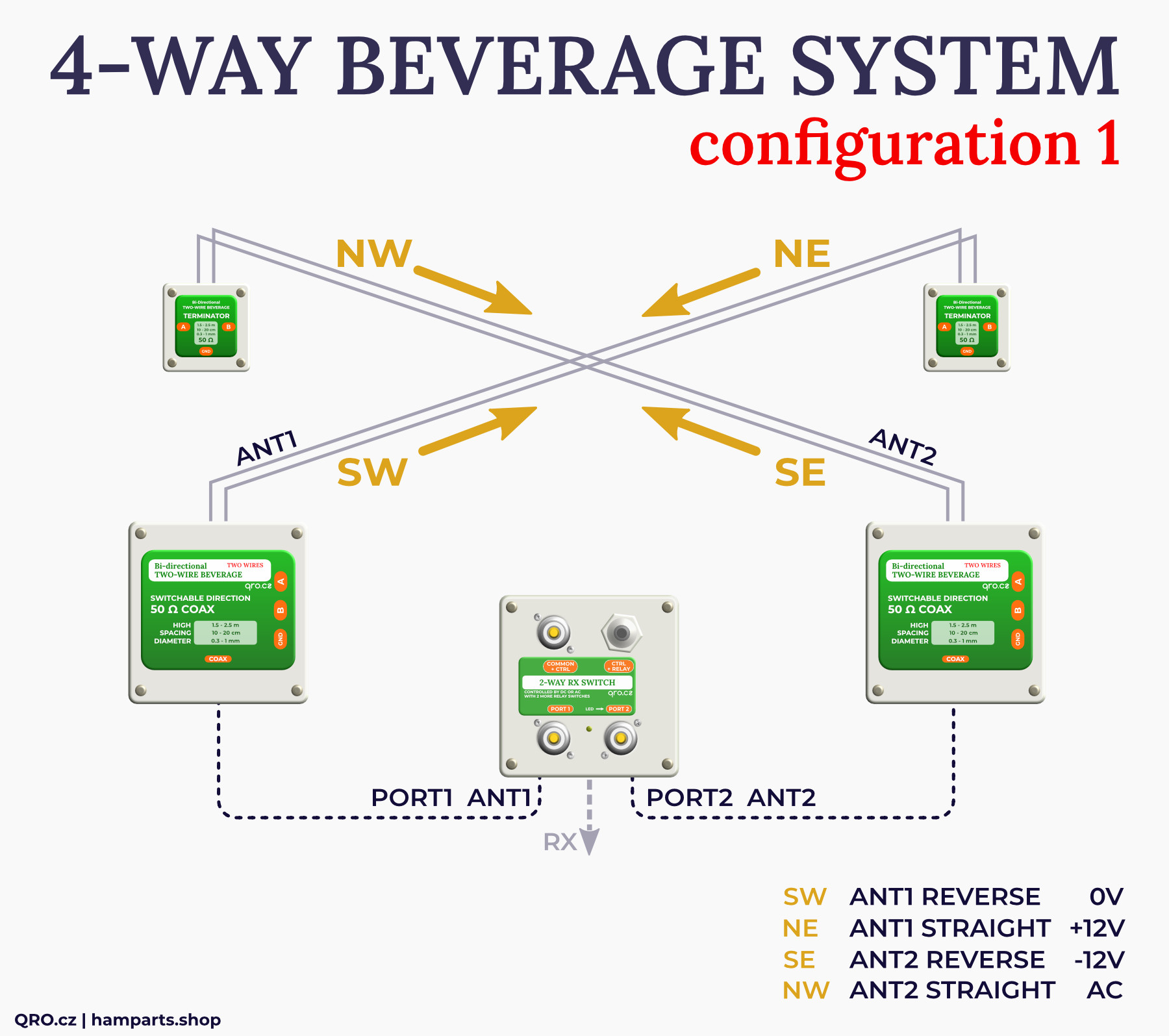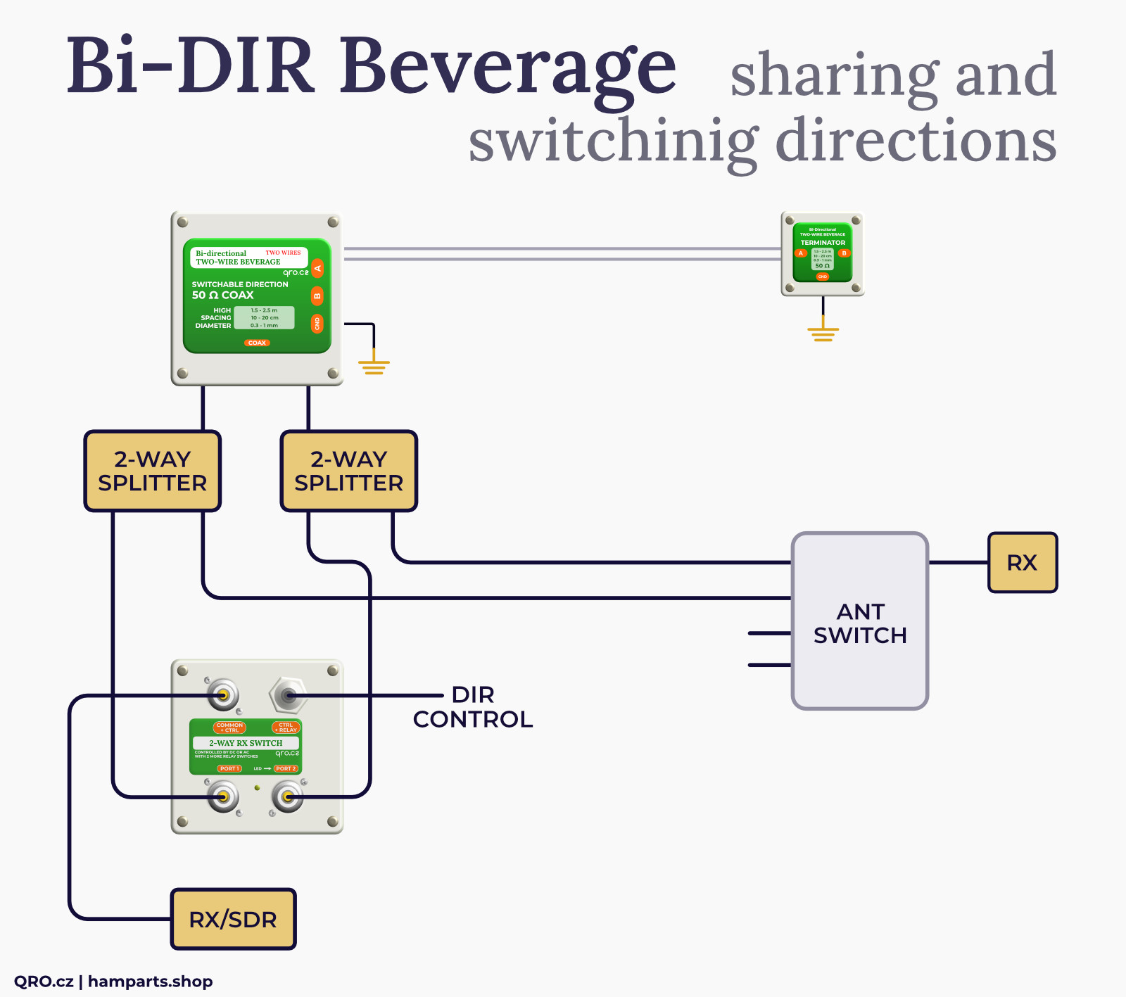 Of course, you can also use Bi-directional Beverage antennas that are controlled with negative DC voltage and control the 2-way RX switch with positive DC voltage. You can find more: technical article Where are your feeders?