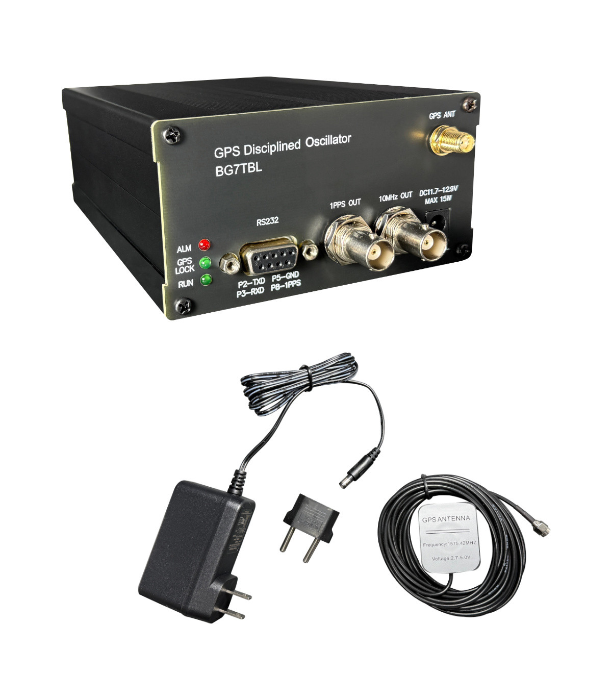 A GPSDO (GPS Disciplined Oscillator) is a device that uses the highly accurate timing signals from a GPS receiver to control and stabilize an oscillator. It relies on the GPS 1-pulse-per-second (1PPS) output to discipline a temperature-controlled crystal oscillator (TCXO) on the control board. Using a specialized filtering method, the GPSDO removes jitter from the GPS 1PPS signal, allowing the TCXO to maintain exceptionally high frequency accuracy through continuous correction. The circuit board is equipped with an LCD display that shows GPS signal strength, time, and real-time frequency accuracy.